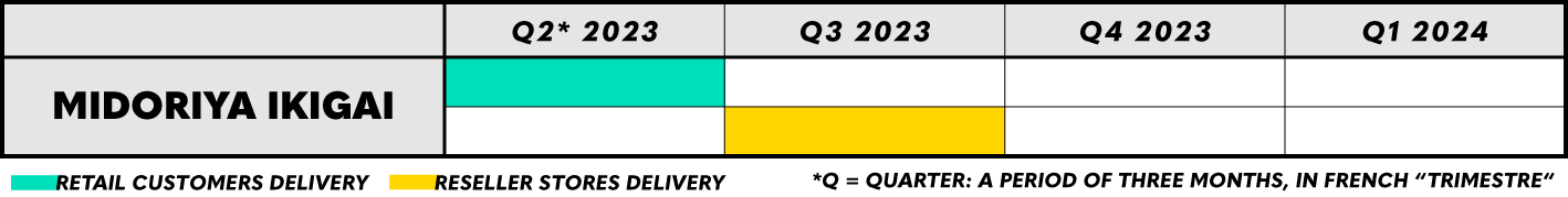 Shipments of his famous father Endeavor - Ikigai are expected to last from Q2 to Q3 2023 for retail customers and partner stores as well as reseller stores.