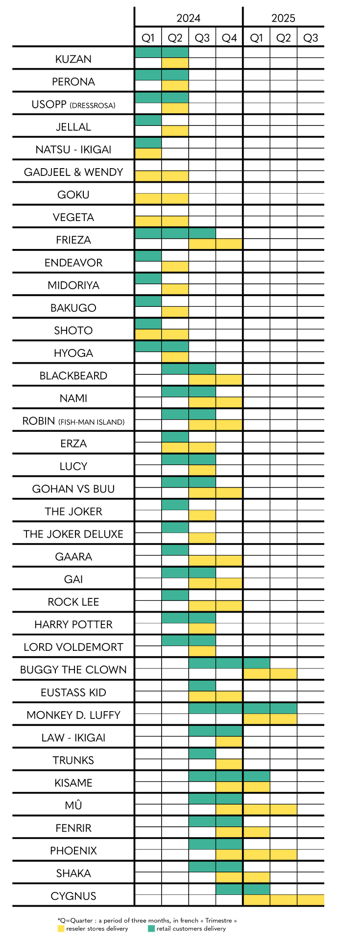 Generally speaking, we will also reduce the number of “large pieces” that no longer meet current market demand. There will always be some, but 3 or 4 per year maximum. These parts also take a lot in production and we want to update ourselves as much as possible on current productions and be in correlation with the message cited above.