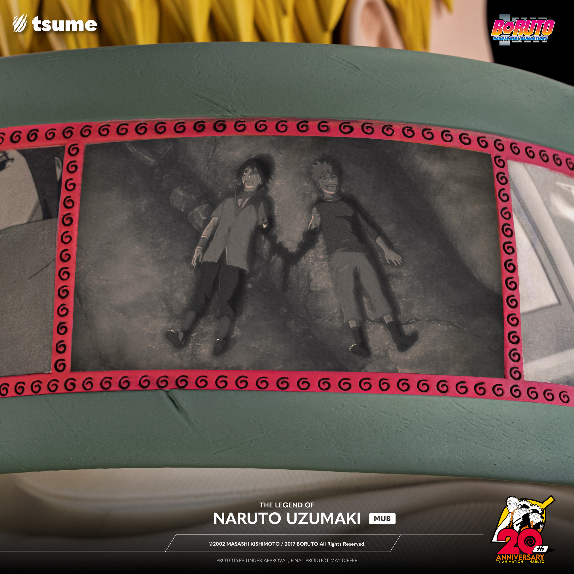 Indeed, 3 Naruto and a parchment are present on the work, guiding threads of the life of the Konoha ninja.
