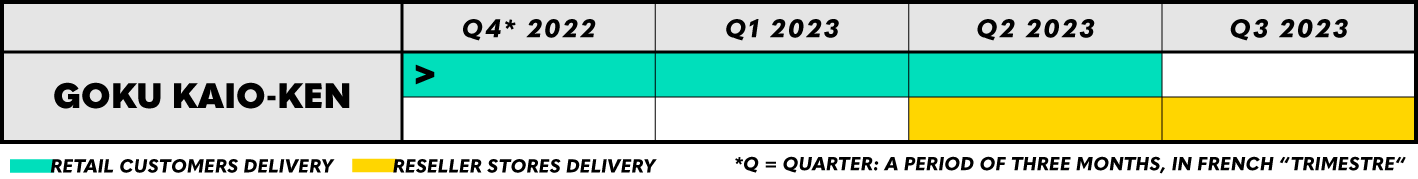 Deliveries of savior Goku Kaio-ken HQS are expected to last through Q2 2023 for retail customers and partner stores while deliveries to reseller stores are expected to last through August 2023.