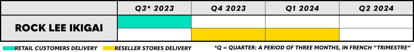 Finally, the two opposites Gaara - Ikigai and Rock Lee - Ikigai are this time on the same wavelength, their shipments expected to last all Q3 2023 for individuals and partner stores and from Q4 2023 to Q1 2024 for reseller stores.