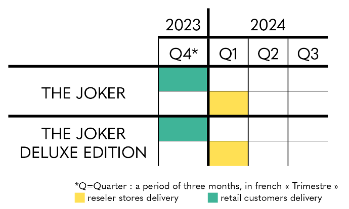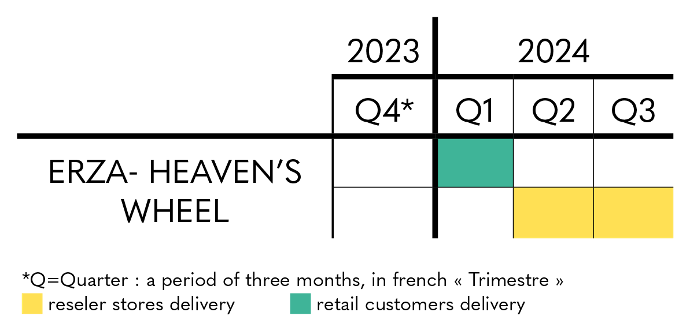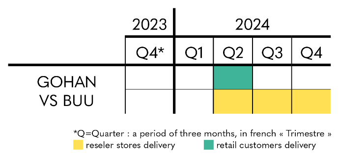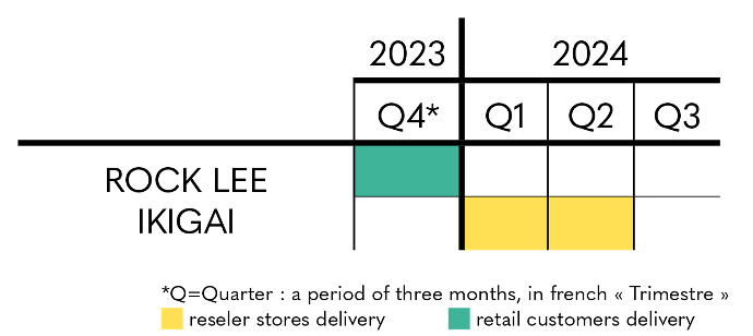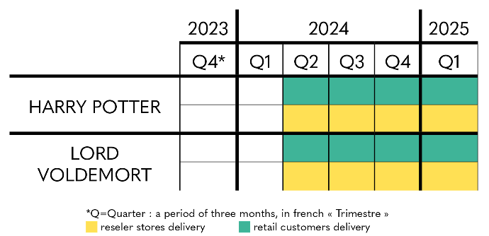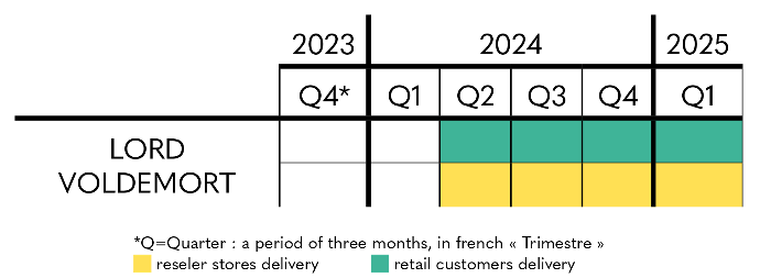 Regarding Lord Voldemort - Ikigai, you can for the moment rely on the estimated delivery period indicated on the product sheet, with shipments scheduled from the second quarter of 2024 to the first quarter of 2025, for individuals and partner stores and resellers.