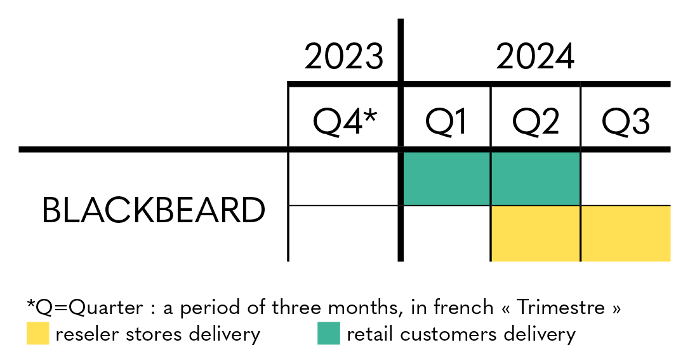 Shipments of Blackbeard - ULTRA HQS are expected from the first quarter of 2024 to the second quarter of 2024 for retail customers and partner stores, while deliveries to reseller stores are expected to last from the second quarter of 2024 to the third quarter of 2024.