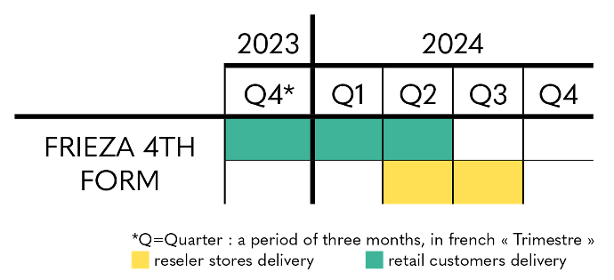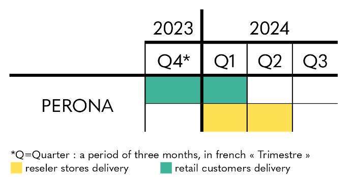 The factory in charge of production in Perona was unable to ensure the production rate requested, which explains this delay in deliveries. Shipments have started in the Asian continent and will continue in the fourth quarter of 2023 and the first quarter of 2024.