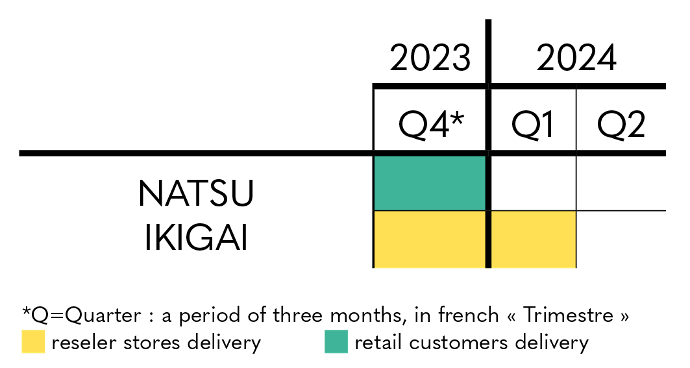 Shipments from Natsu – Ikigai will last through the fourth quarter of 2023 for retail customers and partner stores while those to reseller stores are expected to last from the fourth quarter of 2023 to the first quarter of 2024.