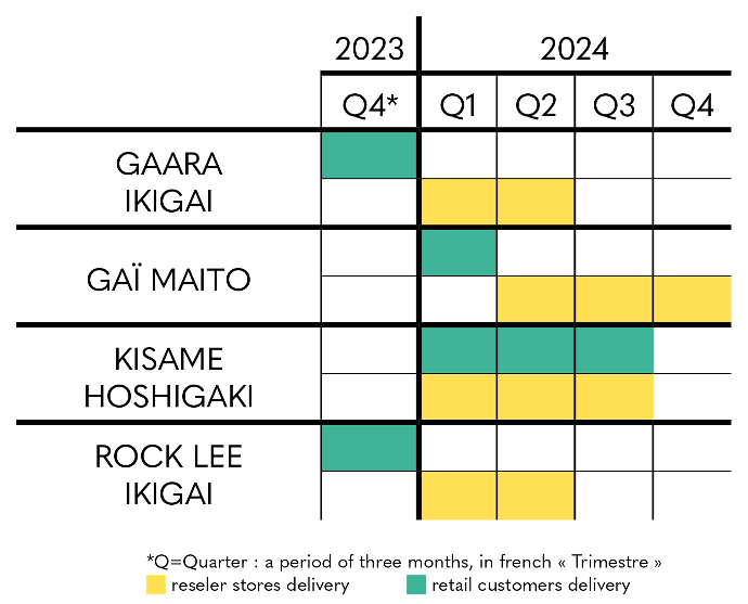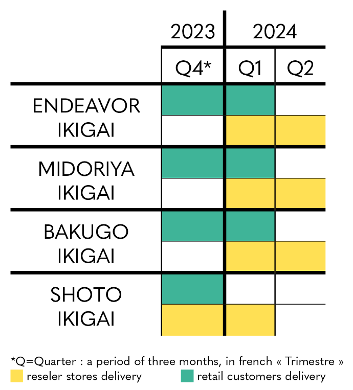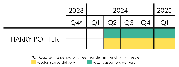 Regarding Harry Potter - Ikigai, you can for the moment rely on the estimated delivery period indicated on the product sheet, with shipments scheduled from the second quarter of 2024 to the first quarter of 2025, for individuals and partner stores and resellers.