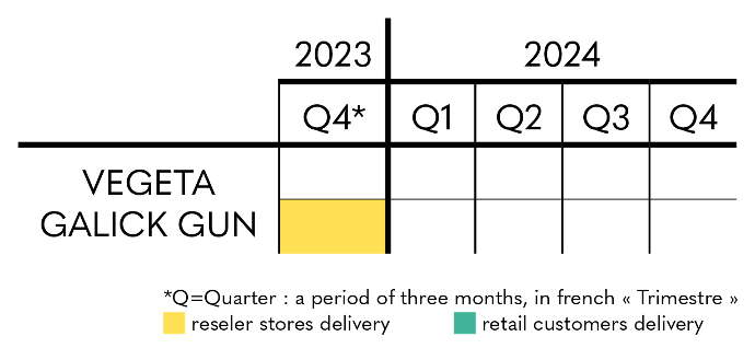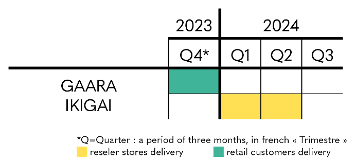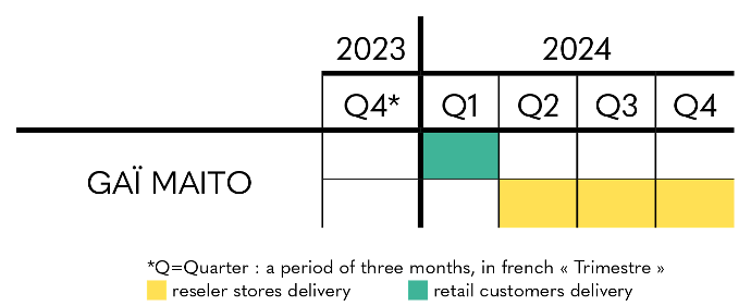 Regarding Gaï Maito - HQS, deliveries should last throughout Q1 2024 for individuals and partner stores and from Q2 2024 to Q4 2024 for reseller stores.