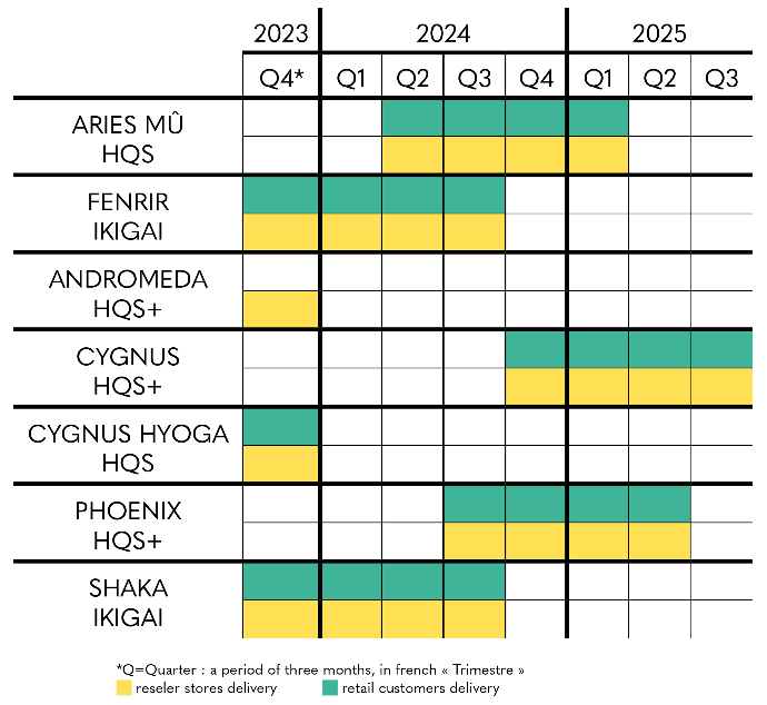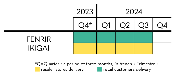 Regarding Fenrir - Ikigai, you can rely on the estimated delivery period indicated on the product sheet for the moment, with shipments scheduled from Q4 2023 to Q3 2024, for individuals and partner and reseller stores.