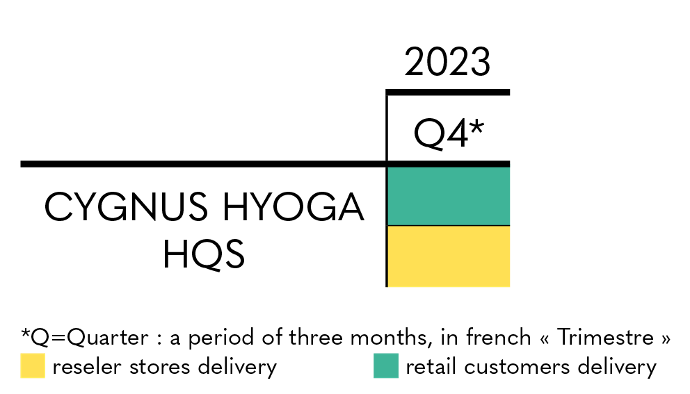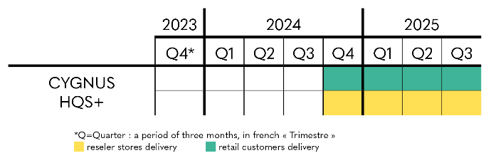 Regarding Cygnus HQS+, you can for the moment rely on the estimated delivery period indicated on the product sheet, with shipments scheduled from the fourth quarter of 2024 to the third quarter of 2025, for individuals and partner stores and resellers.