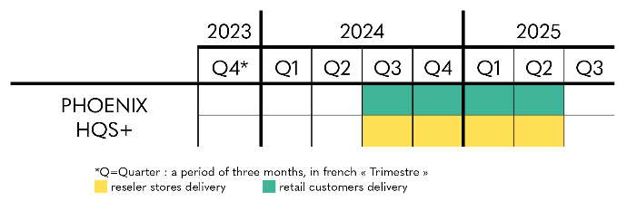 Regarding Phoenix HQS+, you can for the moment rely on the estimated delivery period indicated on the product sheet, with shipments scheduled from the third quarter of 2024 to the second quarter of 2025, for individuals and partner stores and resellers.