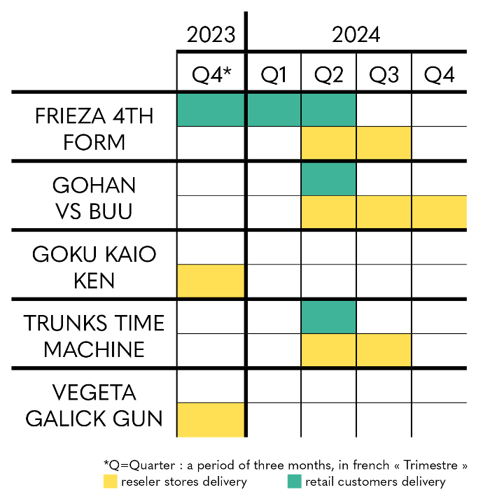 Regarding the man closest to a God Shaka - Ikigai, you can rely on the estimated delivery period indicated on the product sheet for the moment, with shipments scheduled from Q4 2023 to Q3 2024, for the individuals and partner and reseller stores.